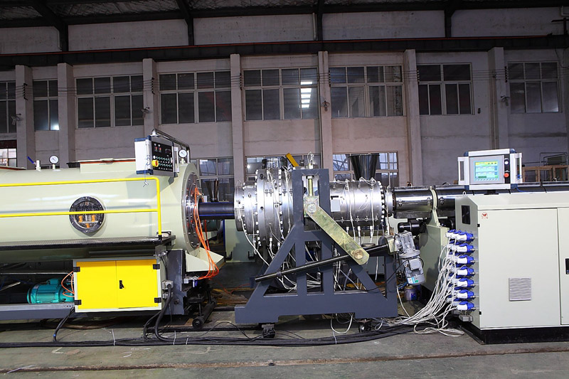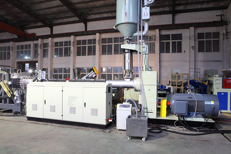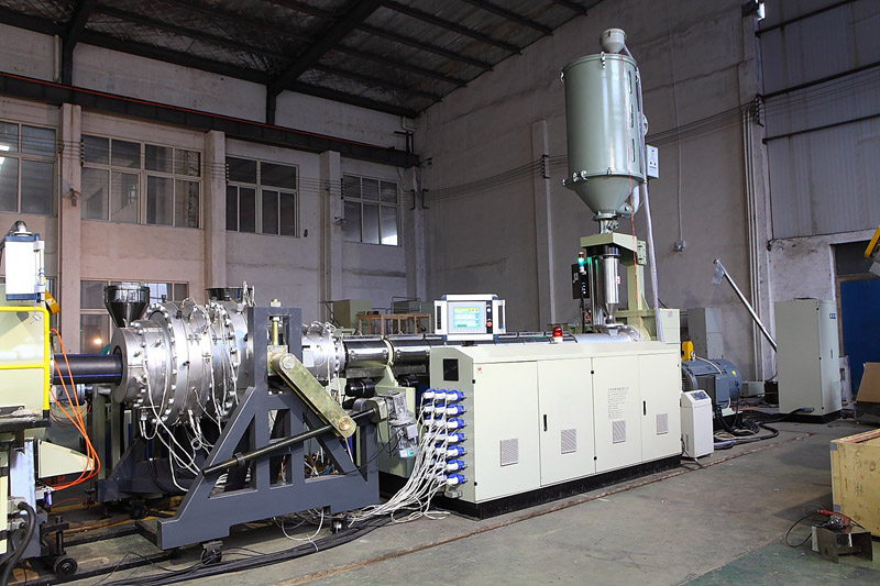 1.生產(chǎn)線選用本公司專用HDPE、PP管材的擠出機,螺桿采用帶屏障和混煉頭結(jié)構(gòu),機筒采用開槽機筒,塑化和混煉小果好,擠出量大而且非常穩(wěn)定。