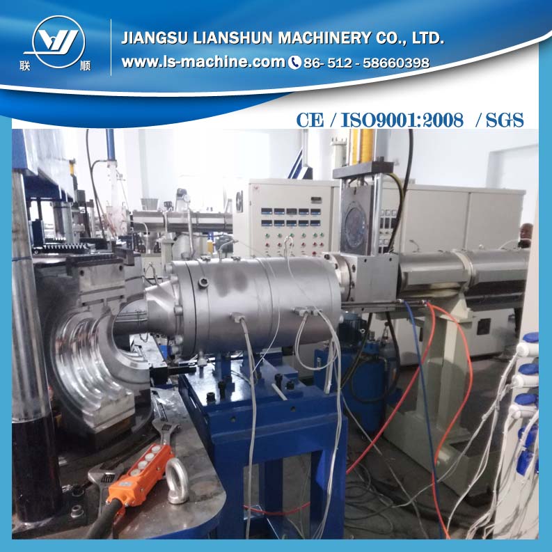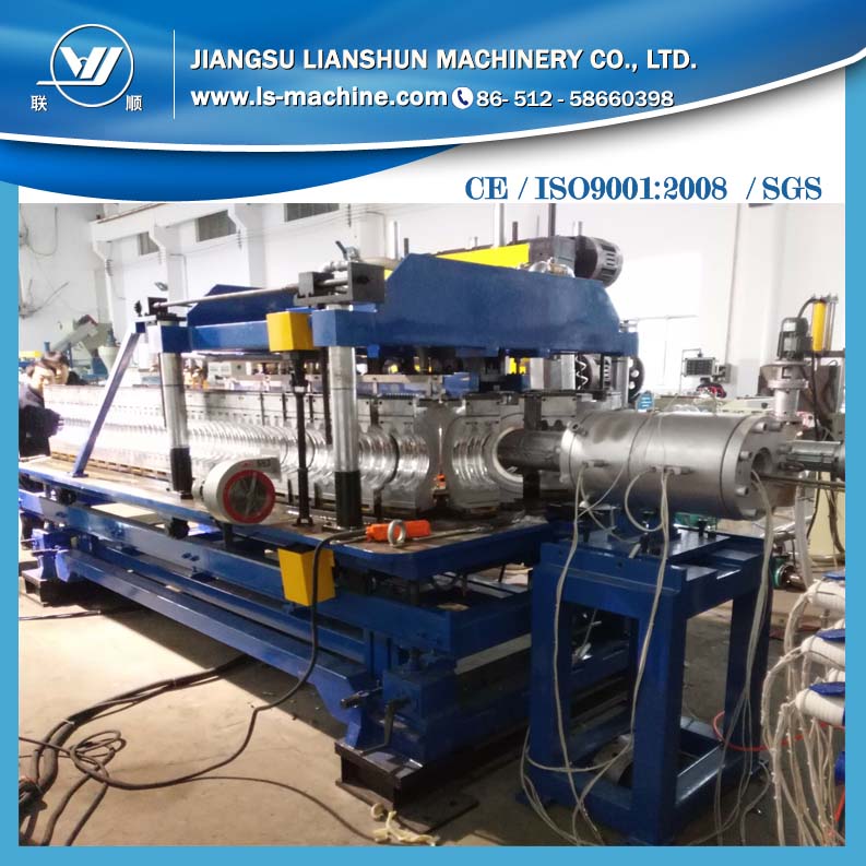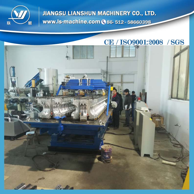 該生產(chǎn)線是以HDPE/PP為原料,所生產(chǎn)的雙壁波紋管內(nèi)壁光滑平整,外壁呈梯形波紋狀,除了具有普通塑料管所具有的耐腐蝕性好、絕緣性高、流動(dòng)阻力小等特點(diǎn)以外,還因特殊的內(nèi)外壁中空環(huán)形結(jié)構(gòu),使其具有環(huán)剛度大、質(zhì)量輕、耐高壓、韌性好、耐磨、耐沖擊性強(qiáng)、不易破損、施工方便、安裝成本低、使用壽命長(zhǎng)等特點(diǎn)。該雙壁波紋管一般采用擴(kuò)口承插和密封圈連接,可以防止熱脹冷縮的影響,被廣泛應(yīng)用于公路、鐵路路基、地鐵工程、廢棄物填埋場(chǎng)、隧道、綠化帶、運(yùn)動(dòng)場(chǎng)及含水量偏高引起的邊坡防護(hù)等排水領(lǐng)域。